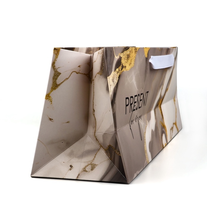 Пакет под бутылку горизонтальный «Мрамор», 36 × 10 × 13 см