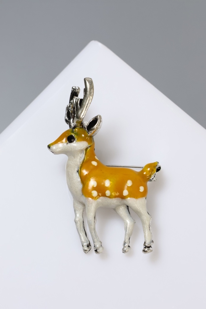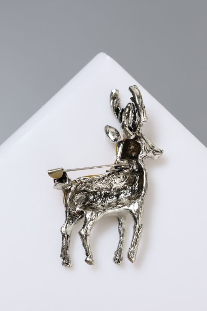 Брошь «Оленёнок», цвет бело-коричневый в чернёном серебре