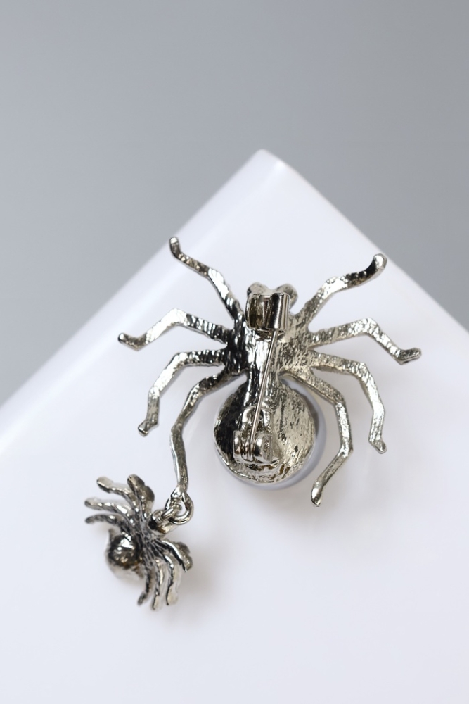 Брошь «Паук» и паучок, цветной в серебре
