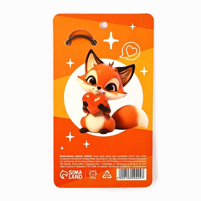 Брелок линейка для ключей «Фыр-фыр», 2 х 10 см.