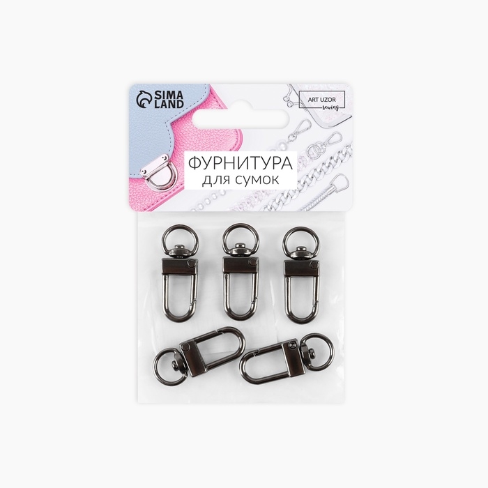 Карабин металлический, 41 × 30 мм / 25 × 2 мм, 5 шт, цвет чёрный
