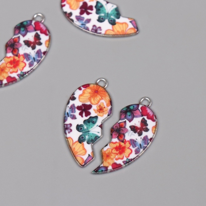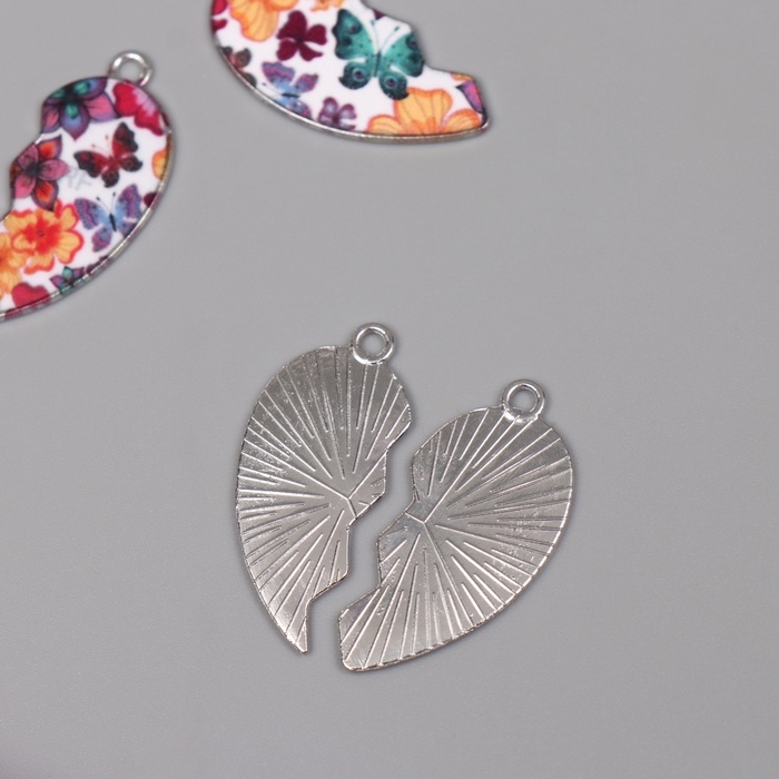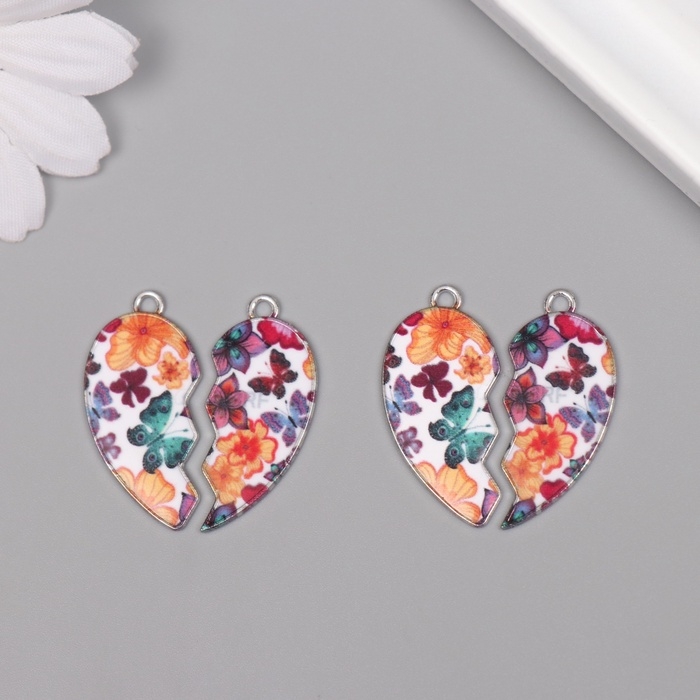 Декор для творчества металл, эмаль "Сердце с бабочками" набор 2 шт 3х2,8 см