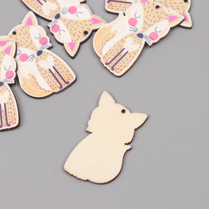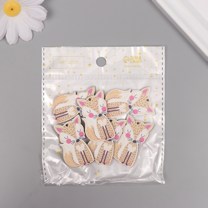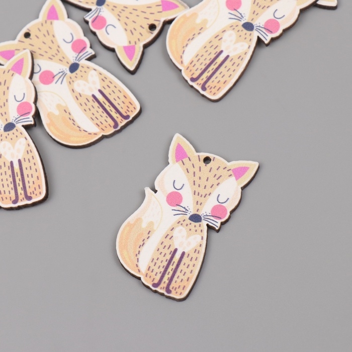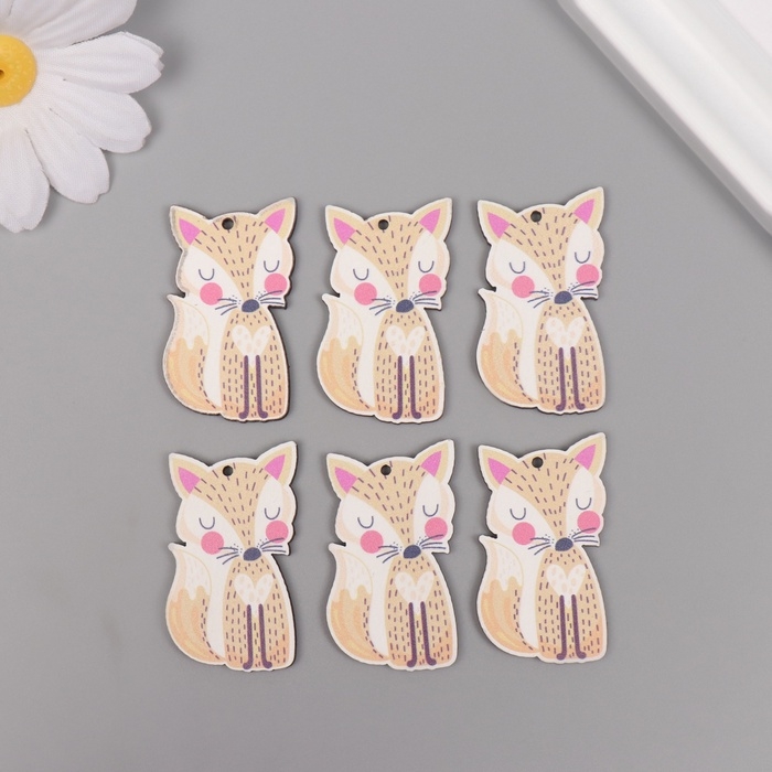 Декор для творчества дерево "Лисичка с сердечком" набор 6 шт 4х2,2х0,3 см