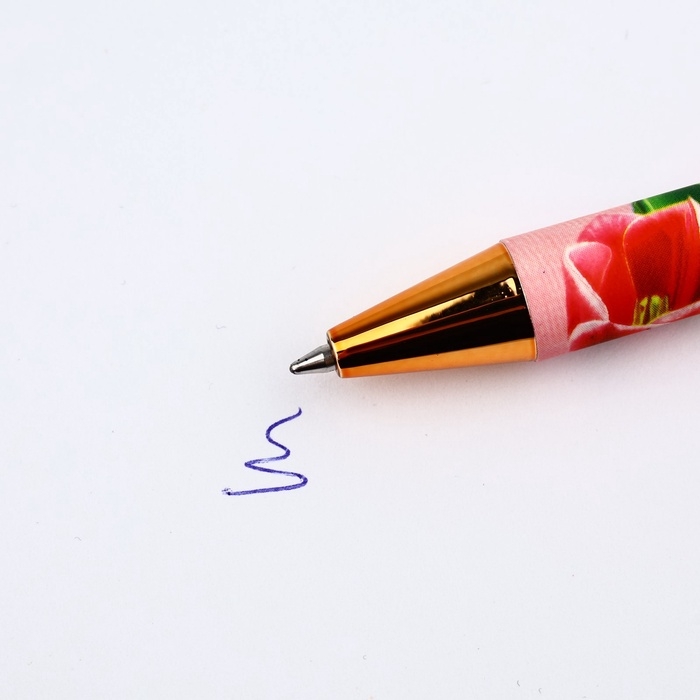 Ручка шариковая синяя паста, пластиковый корпус «С 8 марта тюльпаны»