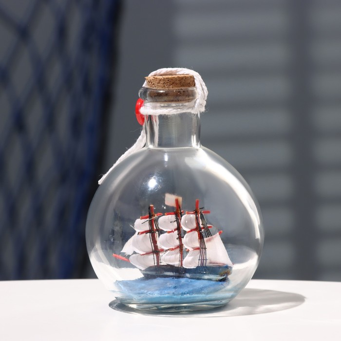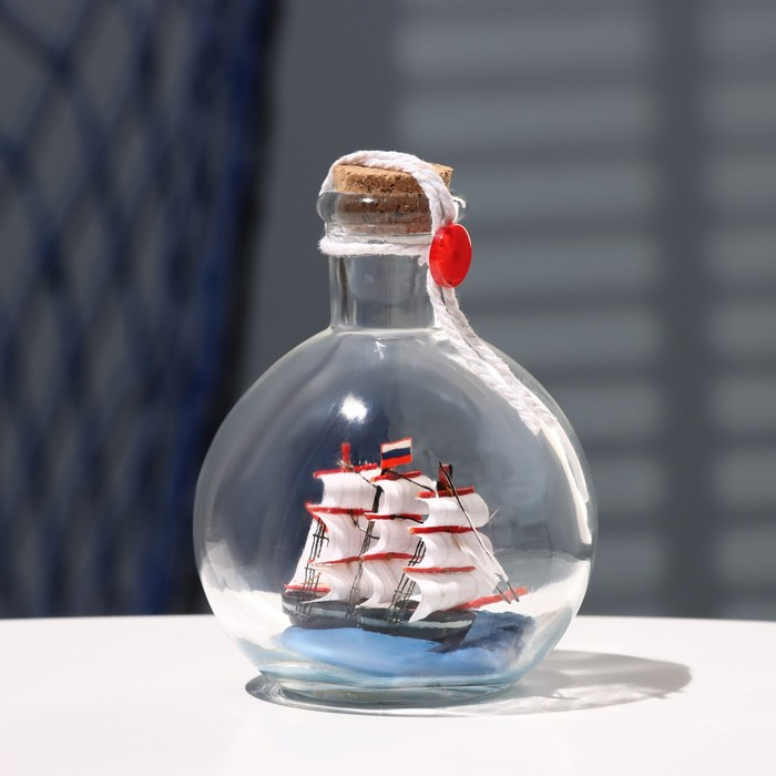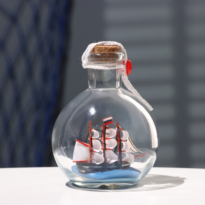 Корабль сувенирный "Трофей", в бутылке, вертикальн. 9*10см