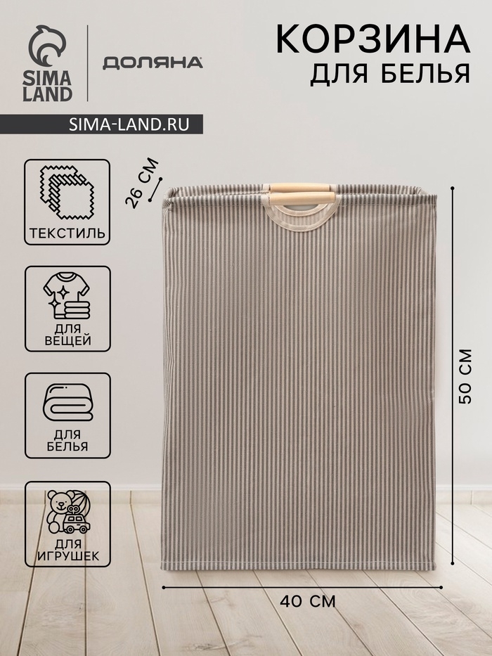Корзина для белья Доляна «Полосы», 40×26×50 см