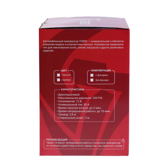 Компрессор автомобильный TORSO, двухпоршневой, 12В, 85 л/мин
