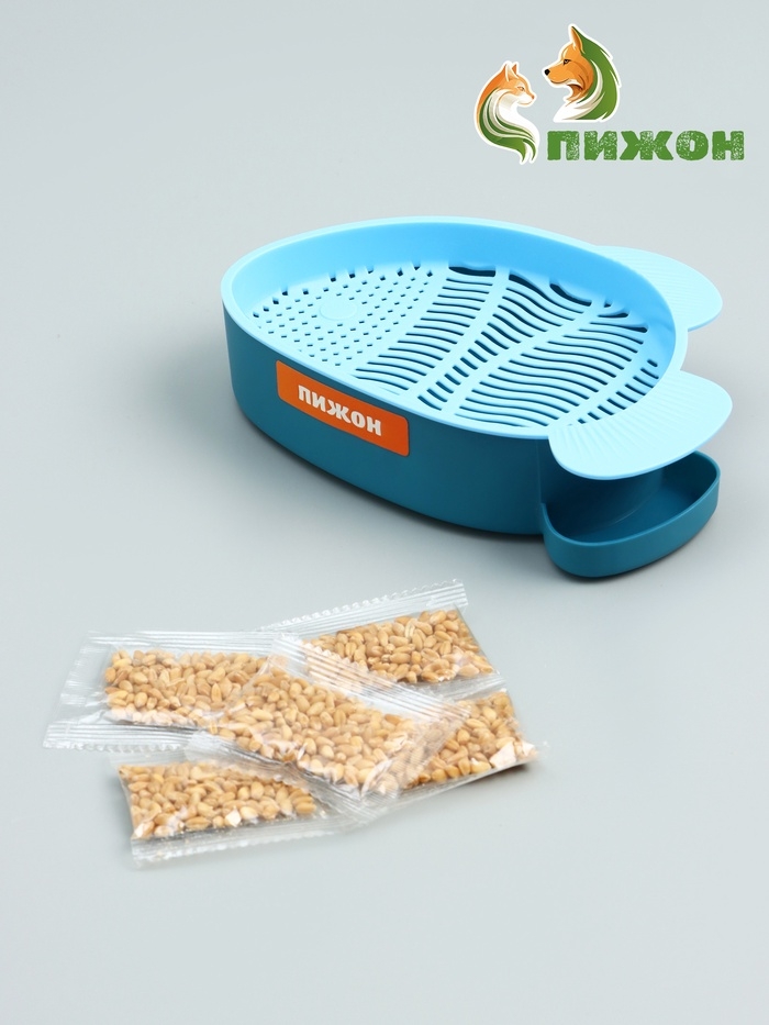 Проращиватель травы кошкам "Рыбка", с семенами, 18 х 12 х 4 см, синий/голубой