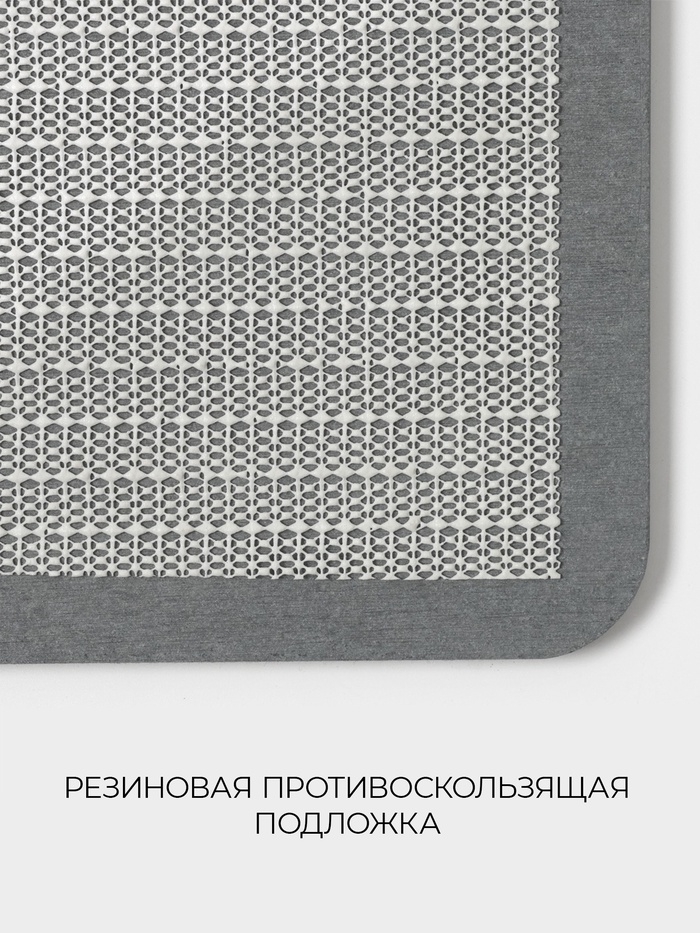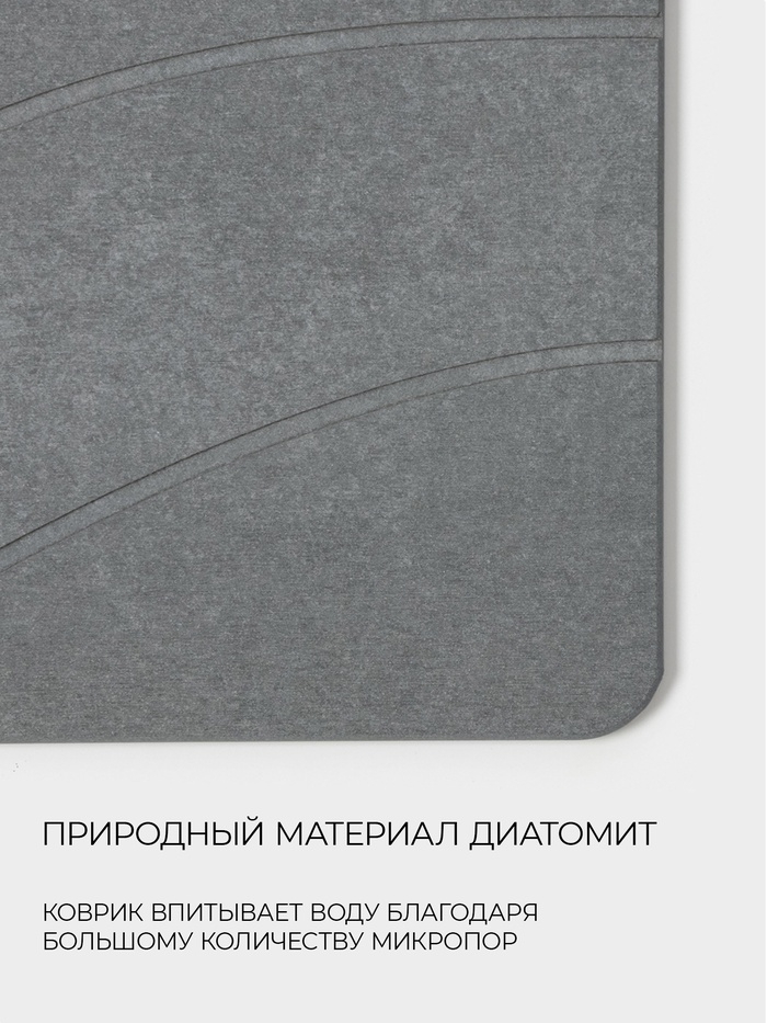 С размерами 39 х 60 см, коврик идеально вписывается в пространство, не создавая визуального нагромождения. Он изготовлен из натурального диатомита, известного своими превосходными противоскользящими свойствами, что обеспечивает безопасность на мокрых поверхностях.