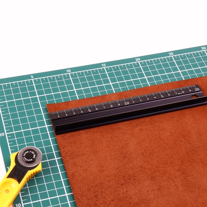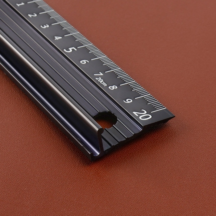 Линейка для кожи, противоскользящая, с упором, металлическая, 20 см, толщина 34 мм