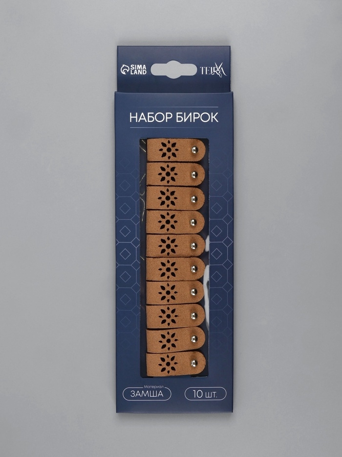 Бирка с кнопкой, «Цветочек», 8 × 1.5 см, набор 10 шт, коричневые