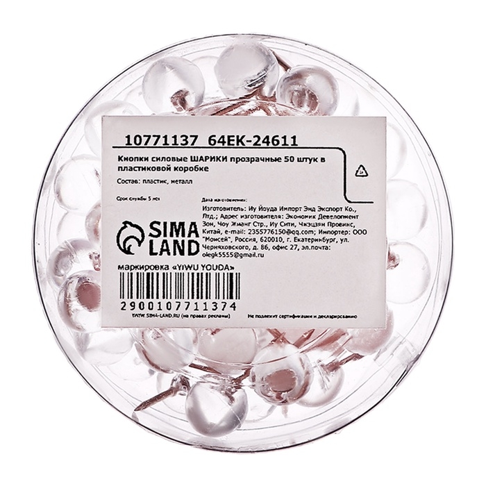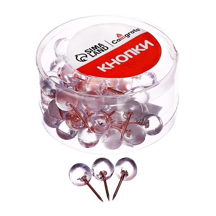 Кнопки силовые прозрачные с иголкой-розовое золото 50 штук в пластиковой коробке 10771135