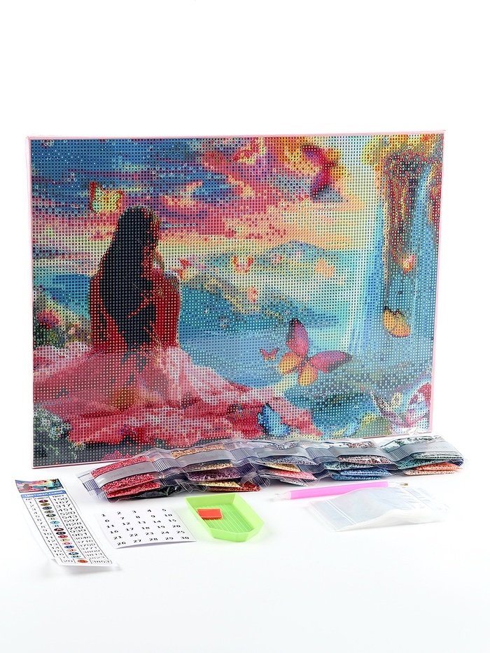 Вам предстоит разложить кристаллики карандашом по пронумерованной схеме. Холст с клеевым покрытием будет надёжно удерживать стразы.
