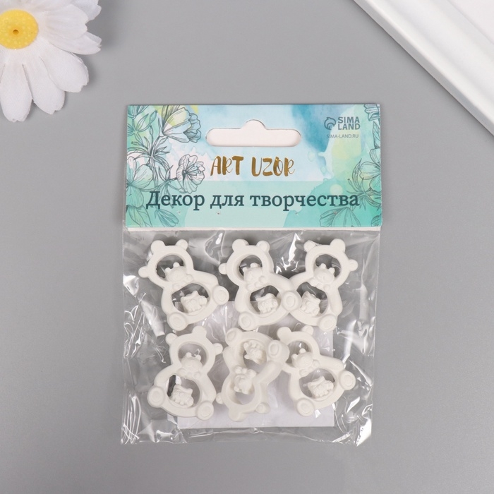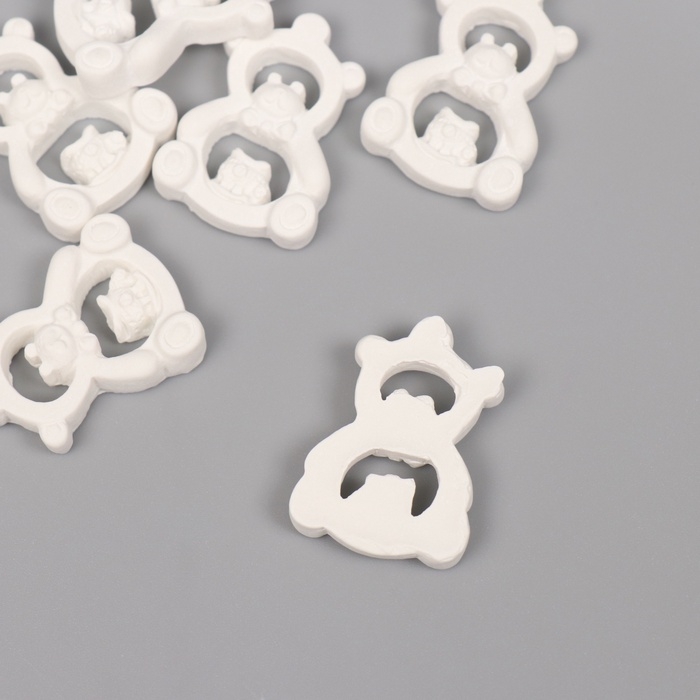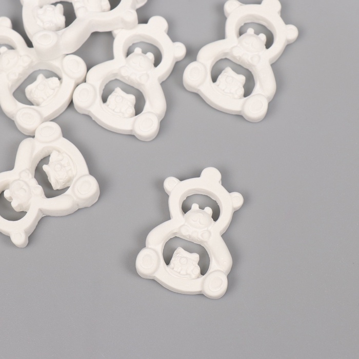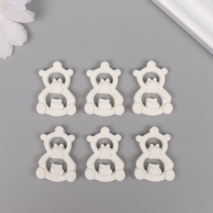 Декор для творчества полистоун "Мишка-игрушка" белый набор 6 шт 2,2х3 см