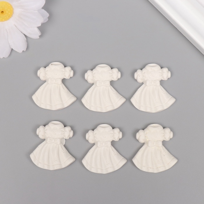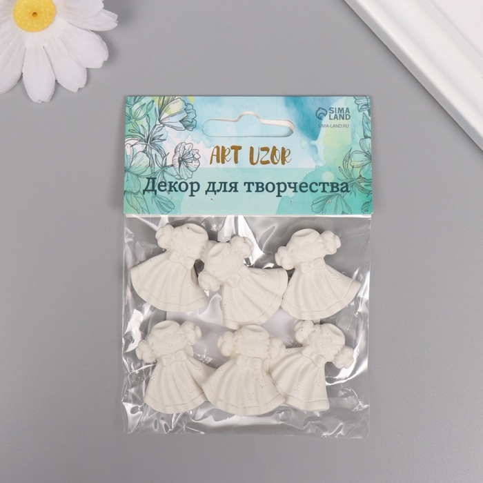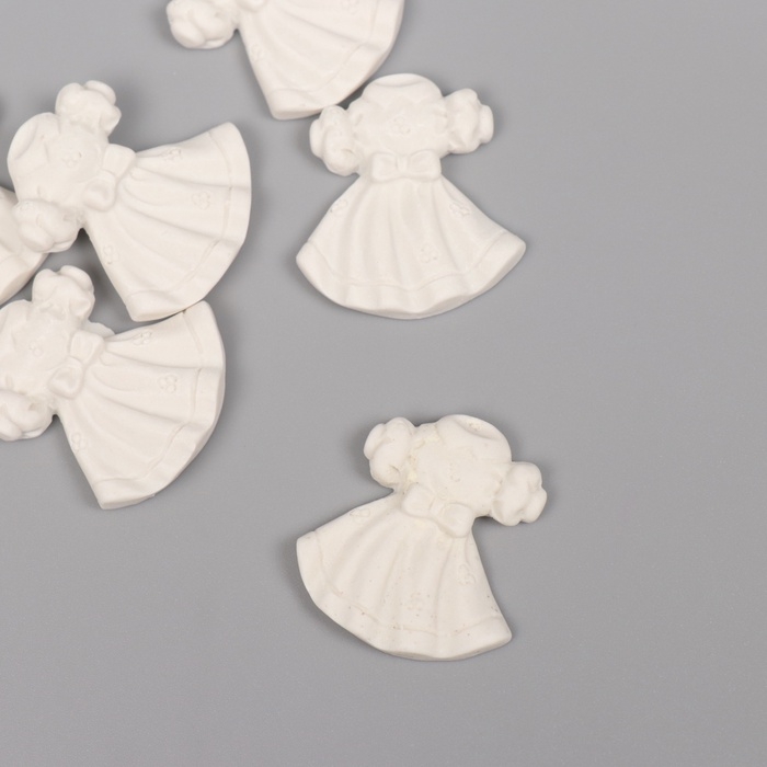 Декор для творчества полистоун "Платье с бантиком" белый набор 6 шт 2,7х3 см