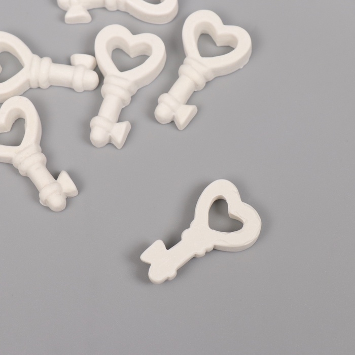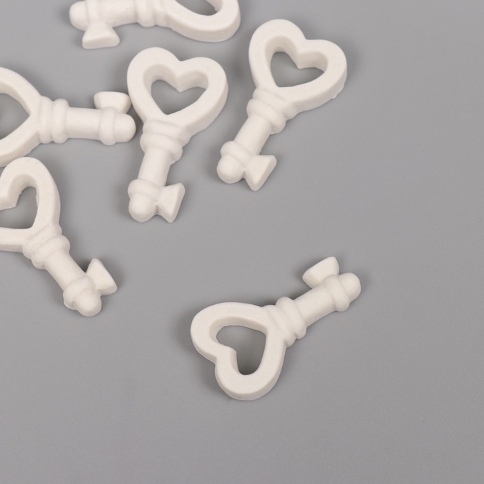 Декор для творчества полистоун "Ключик с сердечком" белый набор 6 шт 2х3 см