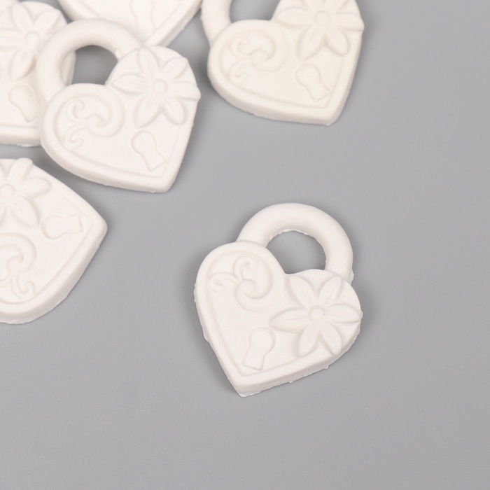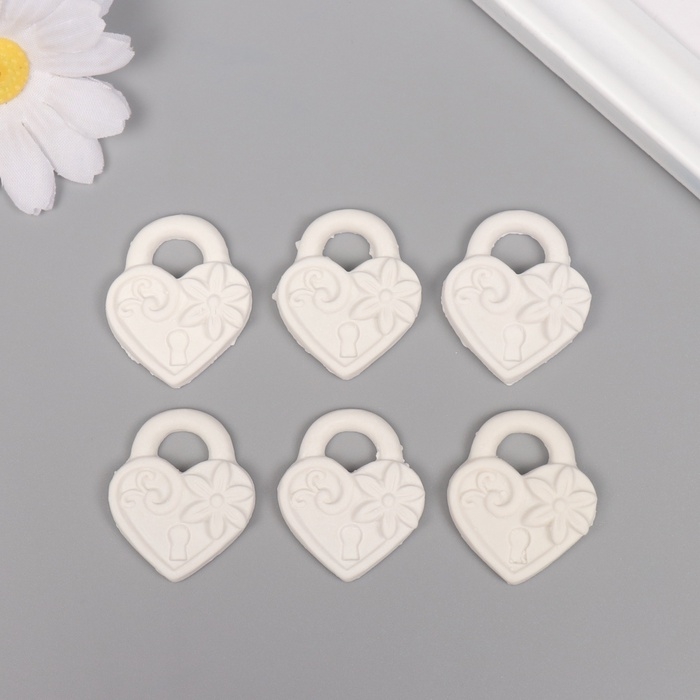 Декор для творчества полистоун "Замок-сердце с цветком" белый набор 6 шт 2,8х3 см