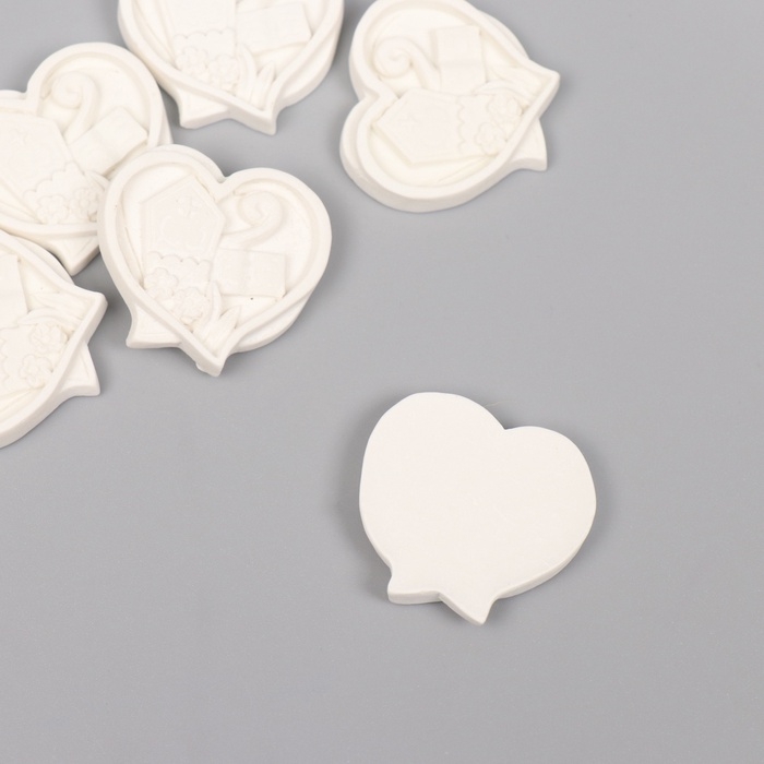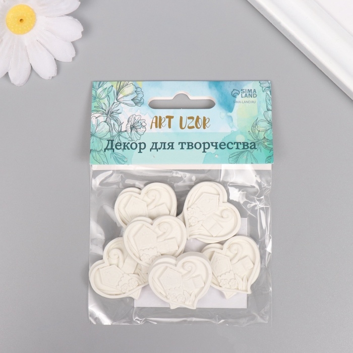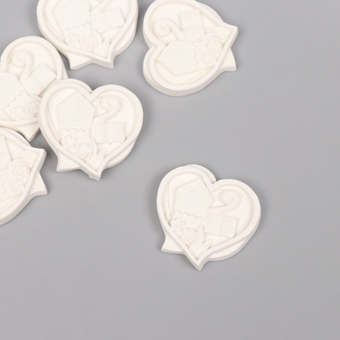Декор для творчества полистоун "Сердце с книгой" белый набор 6 шт 2,8х3 см