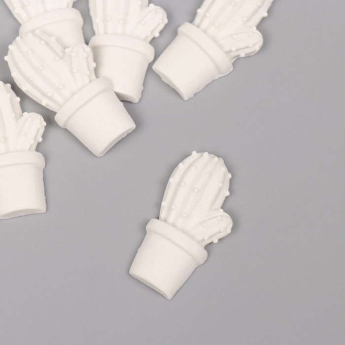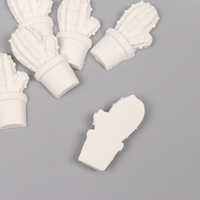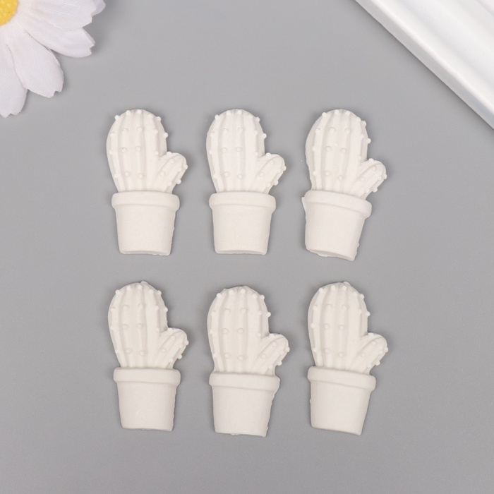 Декор для творчества полистоун "Кактус в горшочке" белый набор 6 шт 2х3,7 см