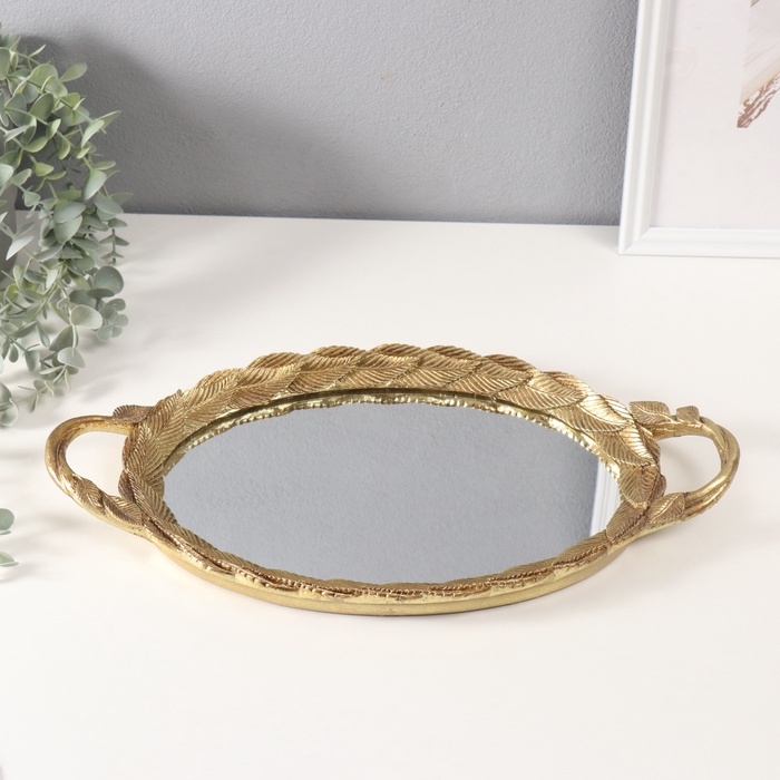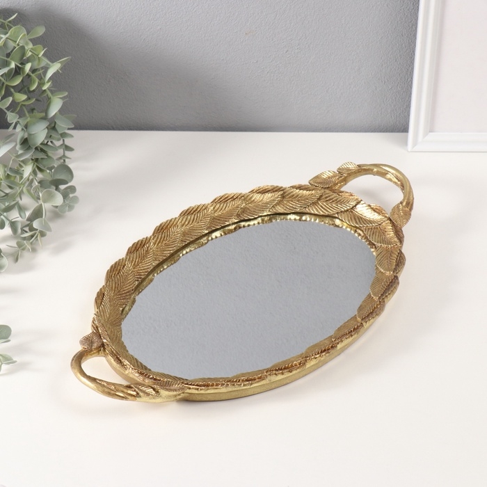Подставка интерьерная полистоун с зеркалом "Листья" золото 23х41х5 см