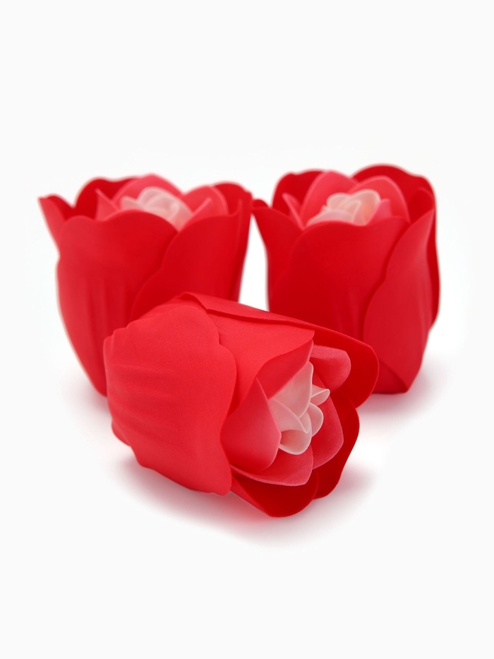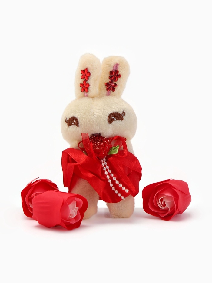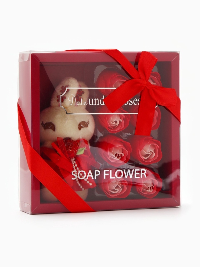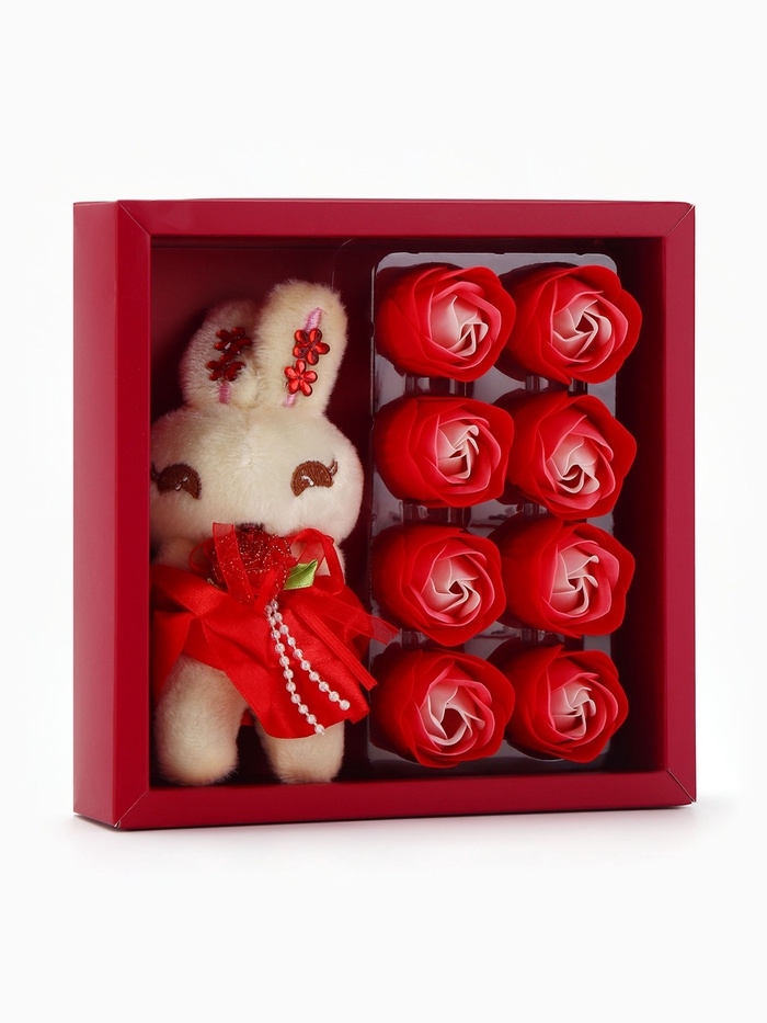 Набор мыльных роз в коробке 8 штук, красно-белые с зайчиком