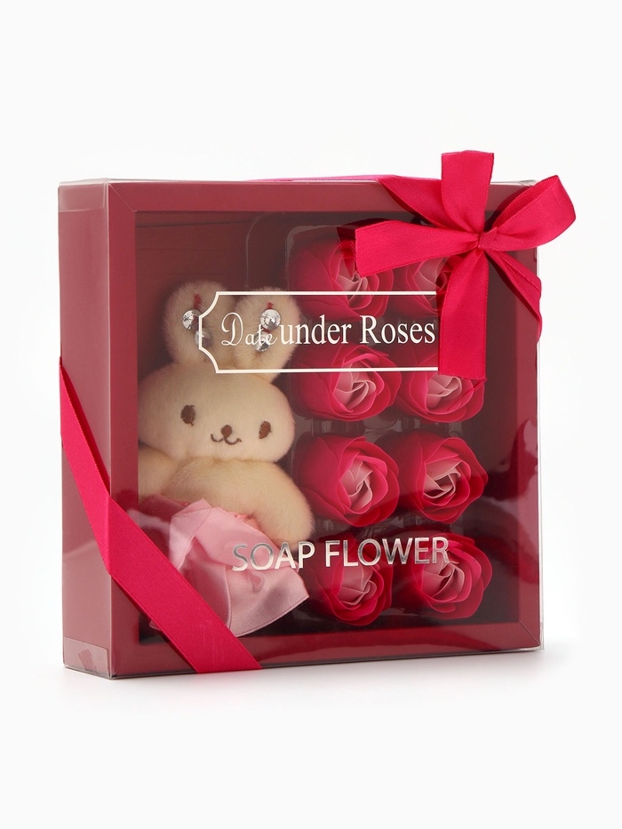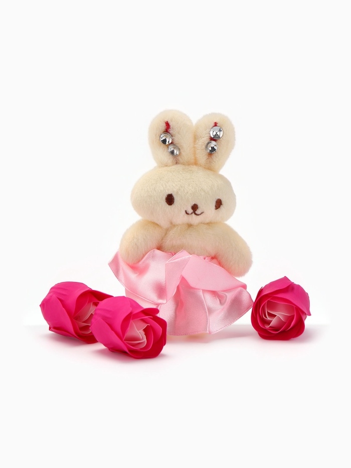 Набор мыльных роз в коробке 8 штук, розово-белые с зайчиком