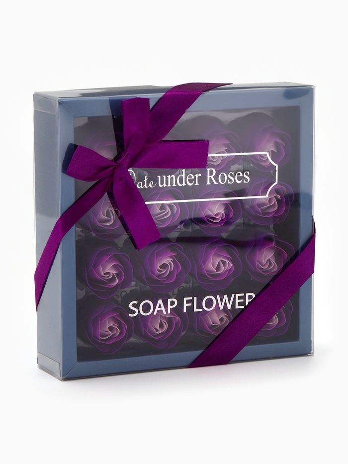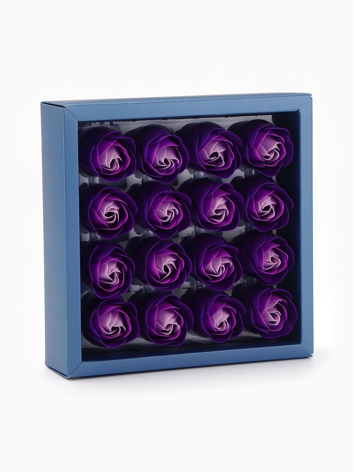 Набор мыльных роз в коробке 16 штук, фиолетово-белые