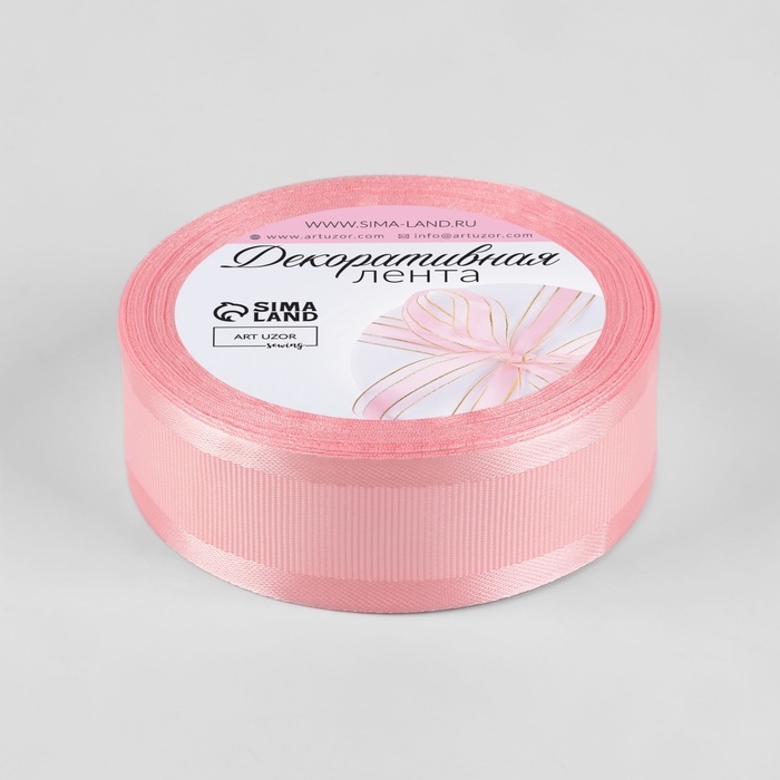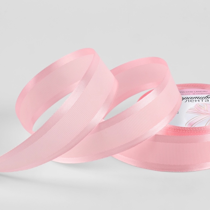 Лента декоративная, репсовая/атласная, 25 мм, 9,1 ± 0,5 м, розовая №04