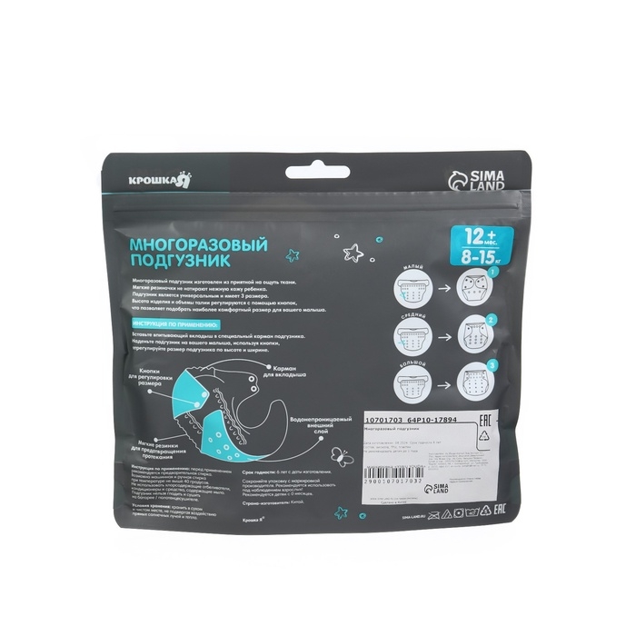 Многоразовый подгузник Крошка Я «Sweet baby», 3-8 кг, бирюзовый