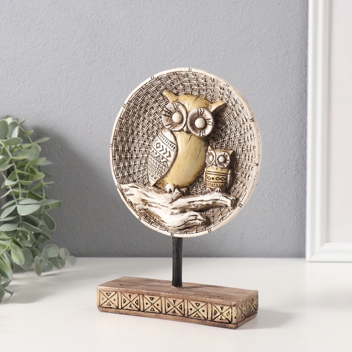 Сувенир полистоун "Два золотых филина на ветке" 5x12x20 см