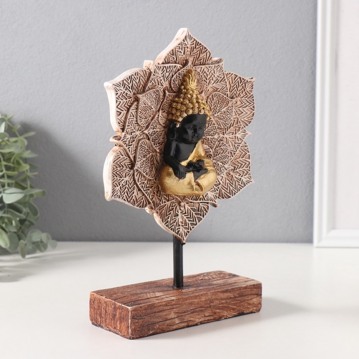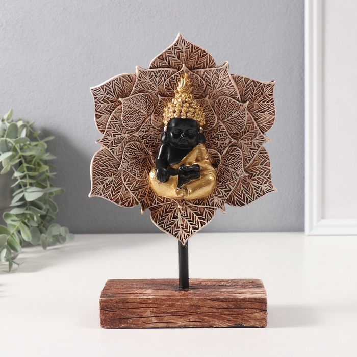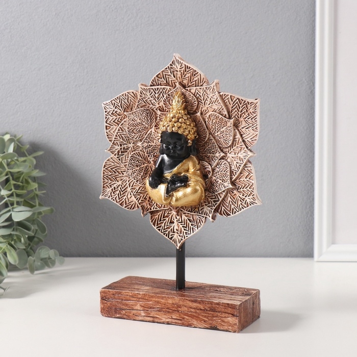Сувенир полистоун "Медитация Будды в цветке" золото 5,5x13,2x23 см