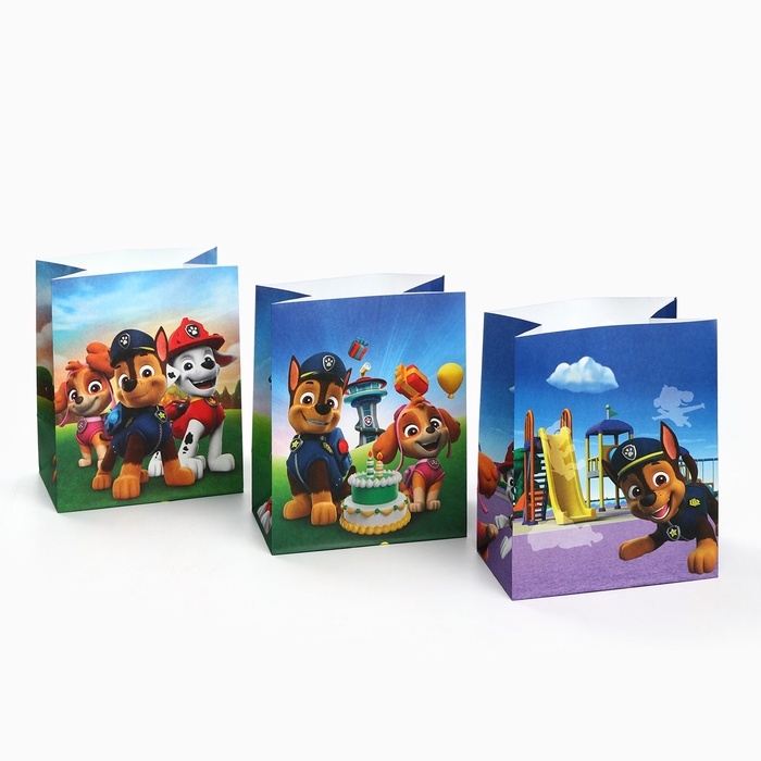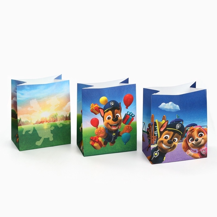 Набор крафтовых пакетов со стикерами, Щенячий патруль, 18х22х12 см