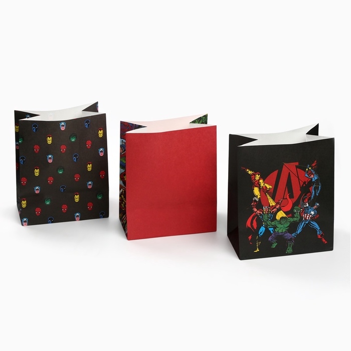 Набор крафтовых пакетов со стикерами, Мстители, 18х22х12 см