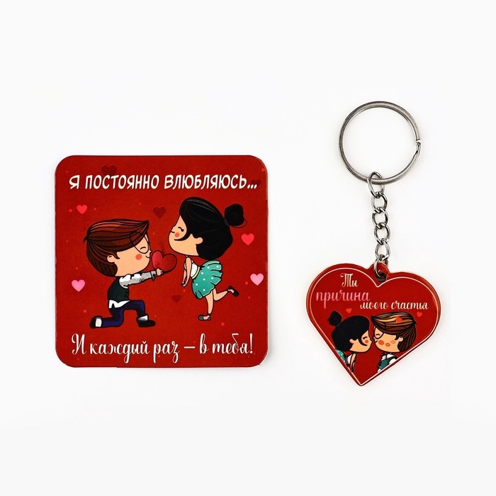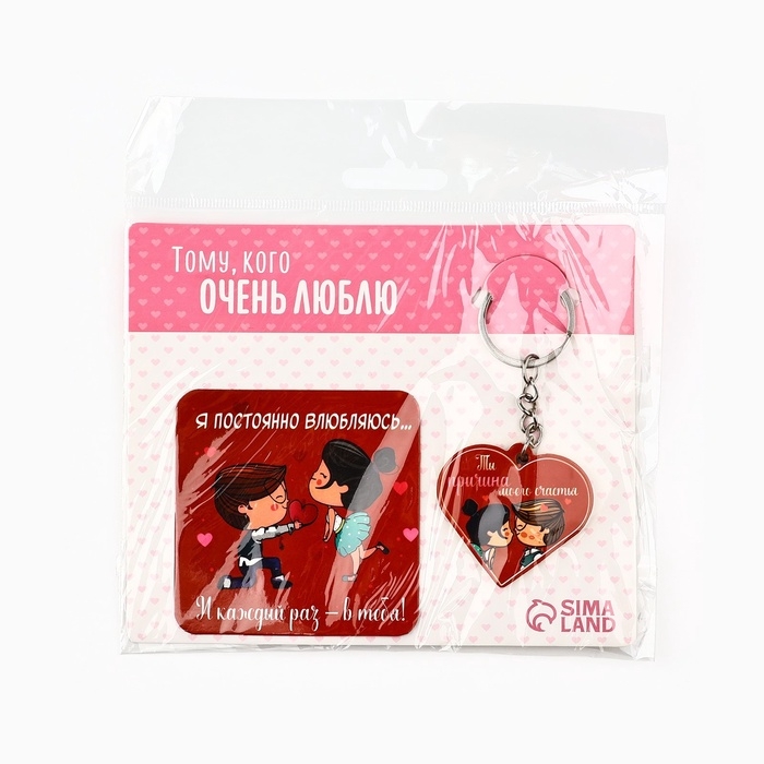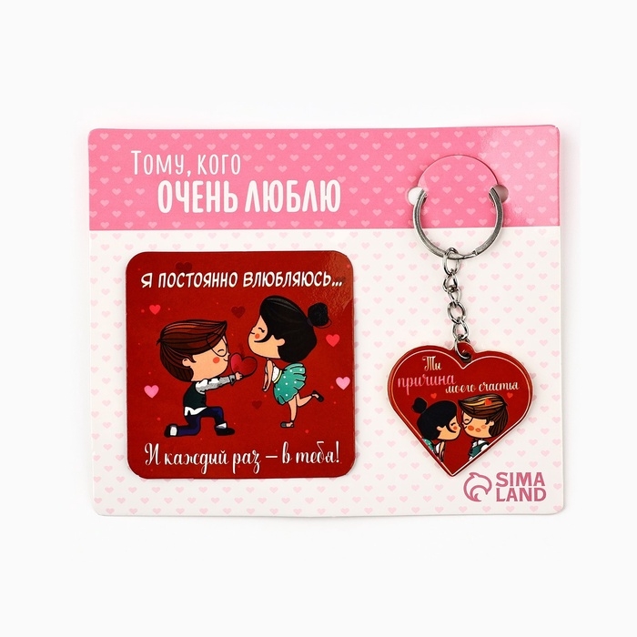 Подарочный набор «Причина моего счастья. 14 февраля», магнит + брелок, 14,5 х 12,8 см