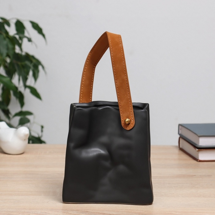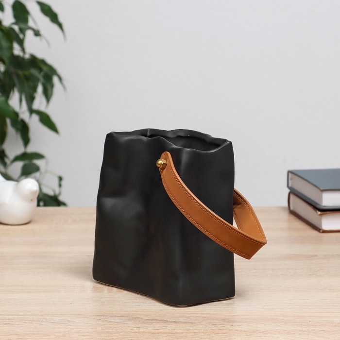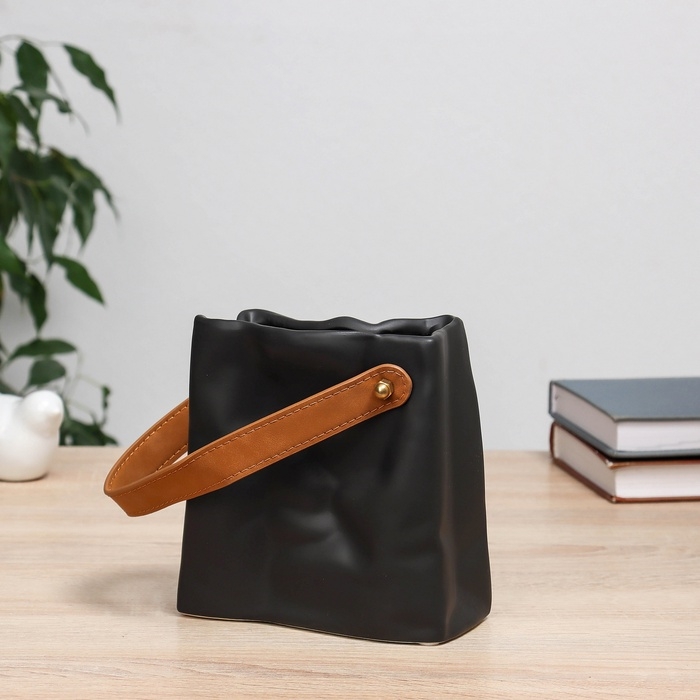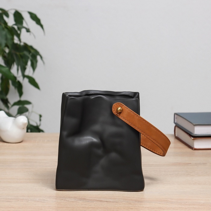 Ваза керамика настольная "Пакет" черный, 14х3,5х14 см