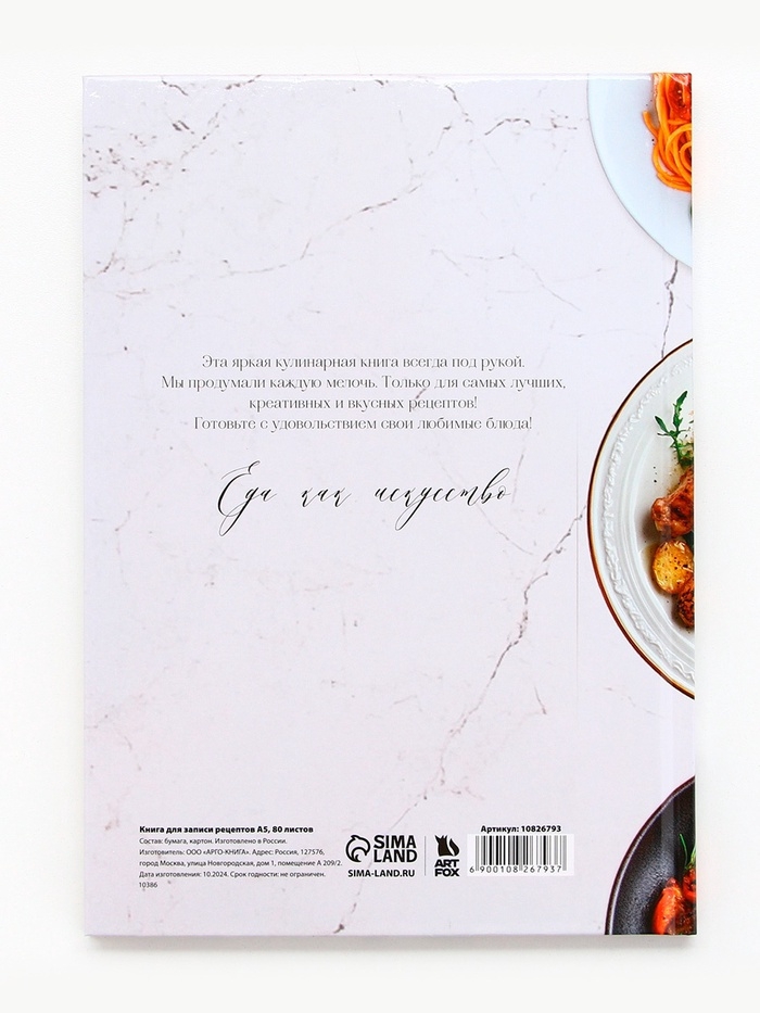 Книга для записи рецептов А5, 80 л. Твердый переплет «Моя книга рецептов»