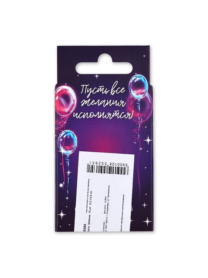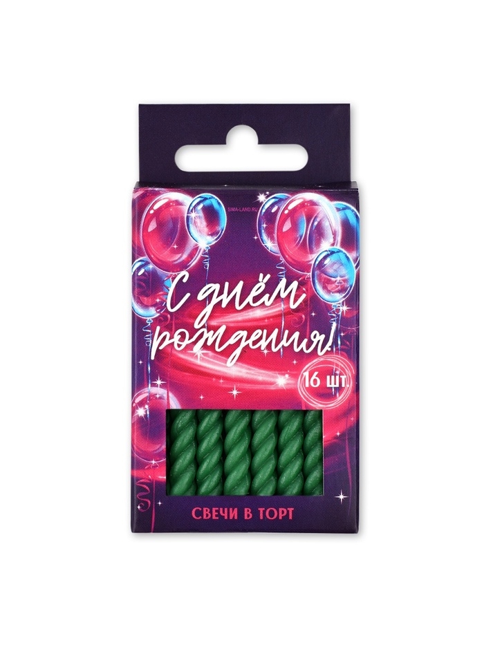 Свечи для торта, зеленые, 16 шт., 6,5 х 0,5 см