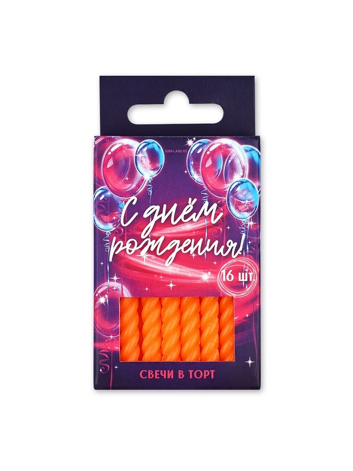 Свечи для торта, оранжевые, 16 шт., 6,5 х 0,5 см