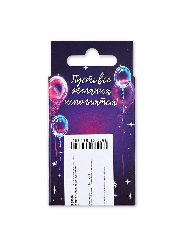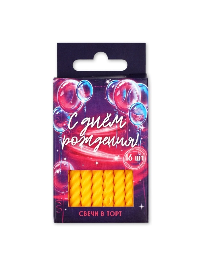 Свечи для торта, желтые, 16 шт., 6,5 х 0,5 см