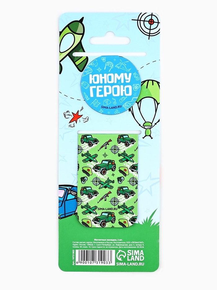 Магнитные закладки для книг, 2 шт. «Юному герою»