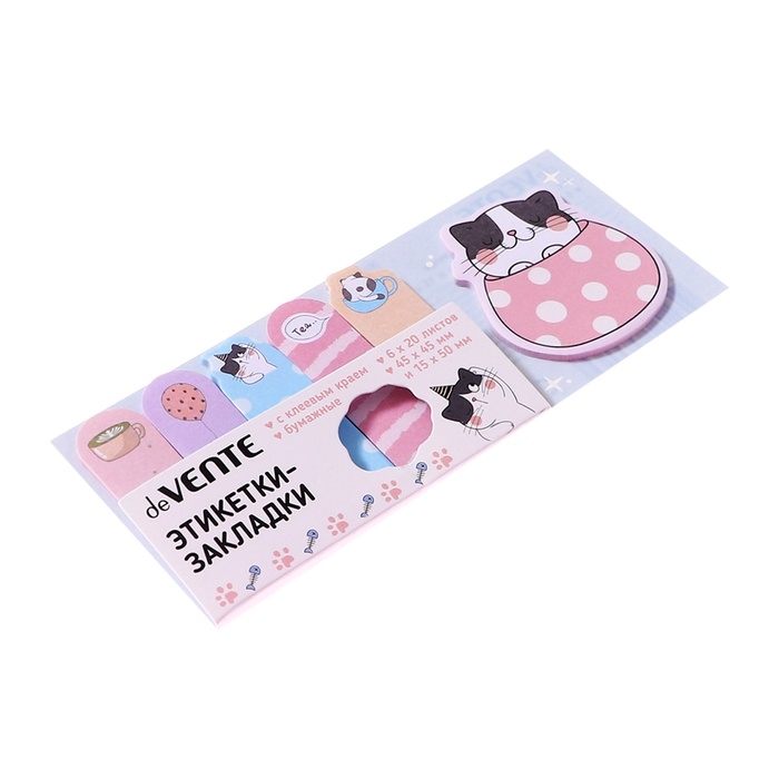 Закладки с клеевым краем бумажные, deVENTE Black&White cat, дизайн 45 х 45мм, 15 х 50мм, 6 цветов по 20 листов