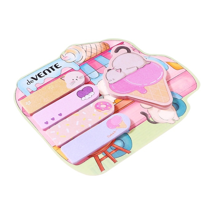 Закладки с клеевым краем бумажные, deVENTE Cat&Ice cream, дизайн 55 х 71мм, 15 х 50мм, 5 цветов по 20 листов