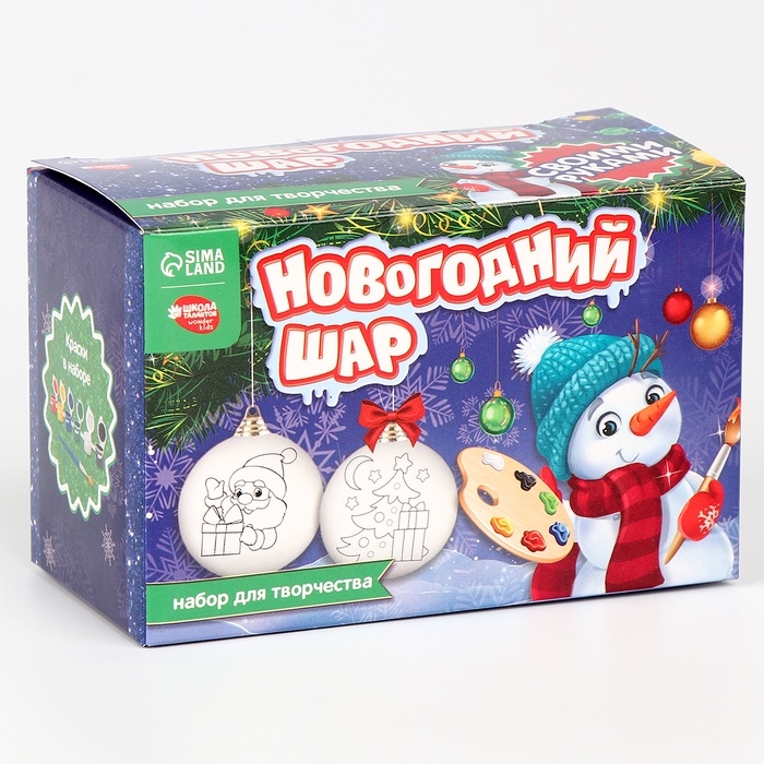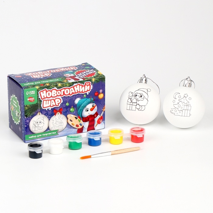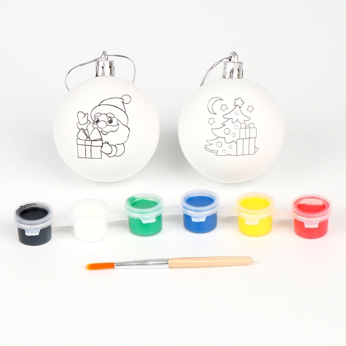 Ёлочные шары под раскраску на новый год «Зимний лес», 2 шт, набор для творчества