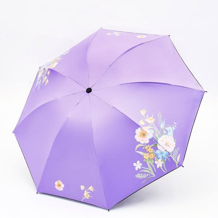 Зонт механический «Цветы», эпонж, 4 сложения, 8 спиц, R = 48/55 см, D = 110 см, цвет МИКС