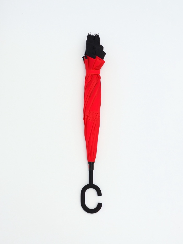 Необычный зонт будет Вашим верным помощником в дождливую погоду. Система данного зонта - механическая. От других моделей отличается механизмом обратного сложения. Зонт закрывается мокрой сторой внутрь. Конструкция задерживает воду в себе. При необходимости Вы легко сможете убрать зонт в сумку или на сидение автомобиля. Мокрых следов не останется! Купол зонта состоит из полиэстра. Потрясающая ручка удобно лежит в руке.