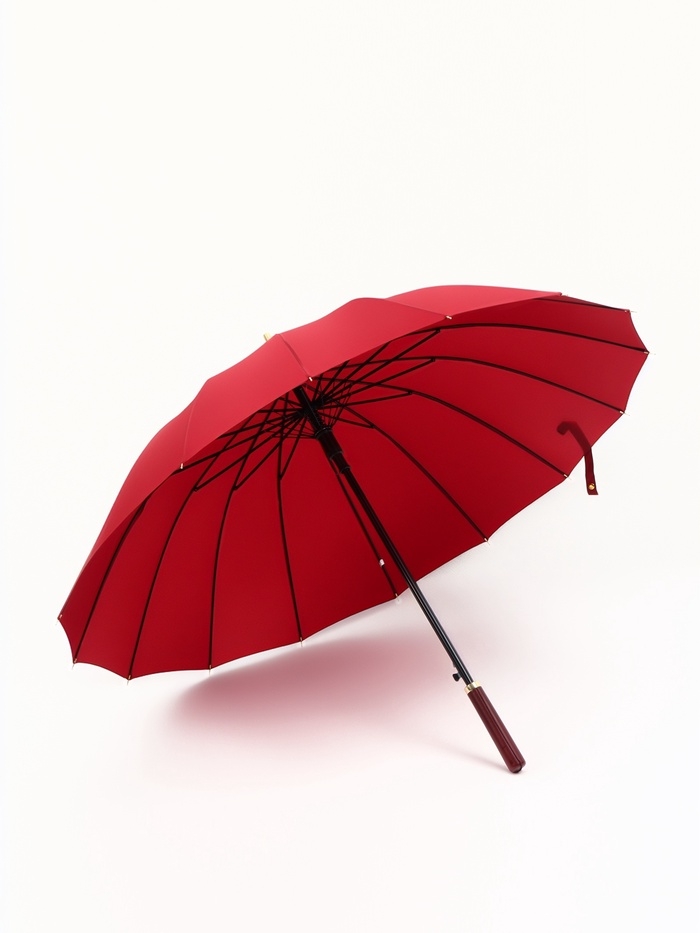 Зонт-трость п/авт R51/60 16сп П/Э В/У ОДНОТОН прямая ручка кожзам бордо пакет
