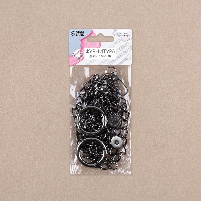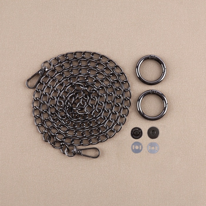 Набор для создания сумки, 4 предмета, кольцо-карабин - 2 шт, цепочка, кнопка магнитная, цвет чёрный никель