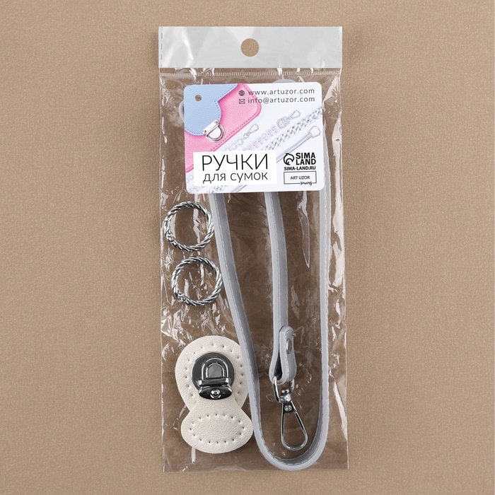 Набор для создания сумки, 4 предмета, кольцо-карабин - 2 шт, ручка, застёжка, цвет белый/серебряный