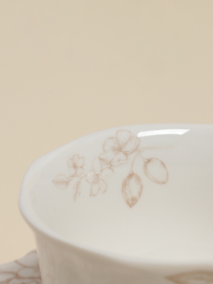 - Элегантный дизайн: белый цвет и цветочные мотивы делают чайную пару универсальной для любого стиля сервировки.
