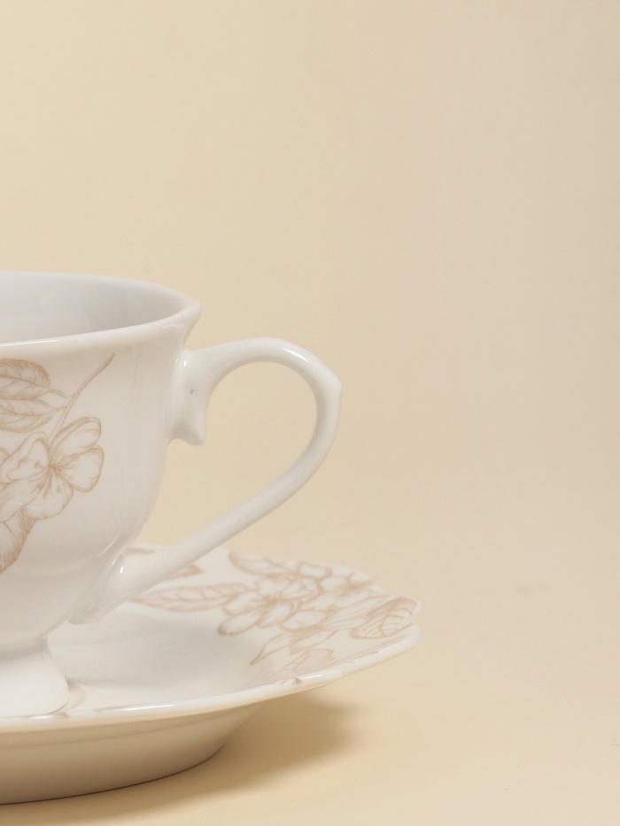Чашка объёмом 220 мл и блюдце размером 17х17 см идеально подходят для подачи вашего любимого чая или кофе. Нежный цветочный дизайн добавляет свежести в сервировку, а гладкая текстура делает их лёгкими в уходе.